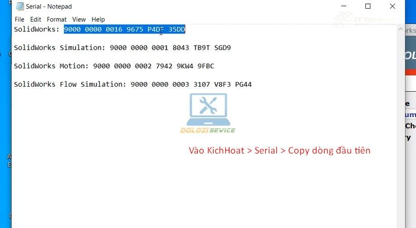 Bước 4: Mở thư mục “KichHoat” > “Serial”, copy dòng code đầu tiên.