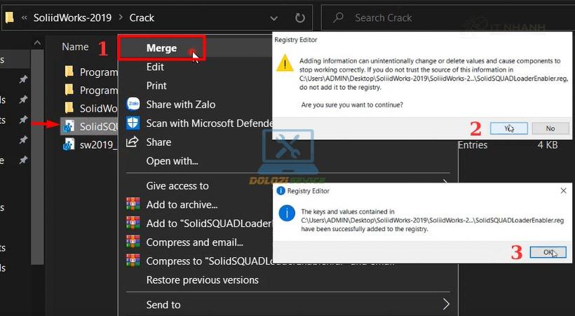 Bước 14: Chạy file “SolidSQUAD” và chọn “Merge”