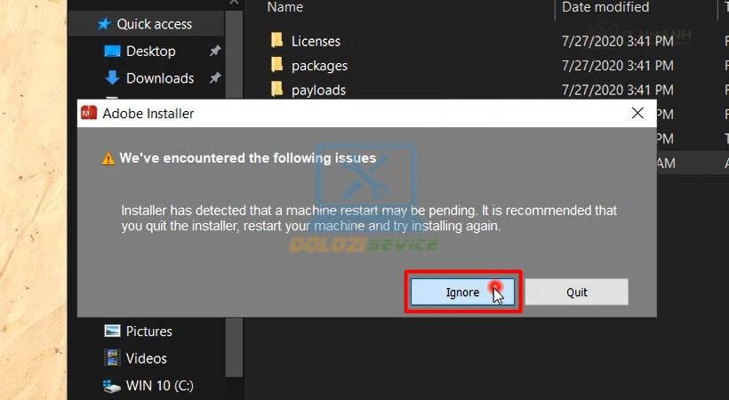 - Chọn Ignore.