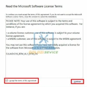 Bước 3 : Tích chọn Continue để tiếp tục.