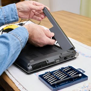 - Tiến hành sửa chữa: Sau khi khách hàng đồng ý với phương án và báo giá, kỹ thuật viên sẽ tiến hành sửa chữa hoặc thay thế bản lề laptop.